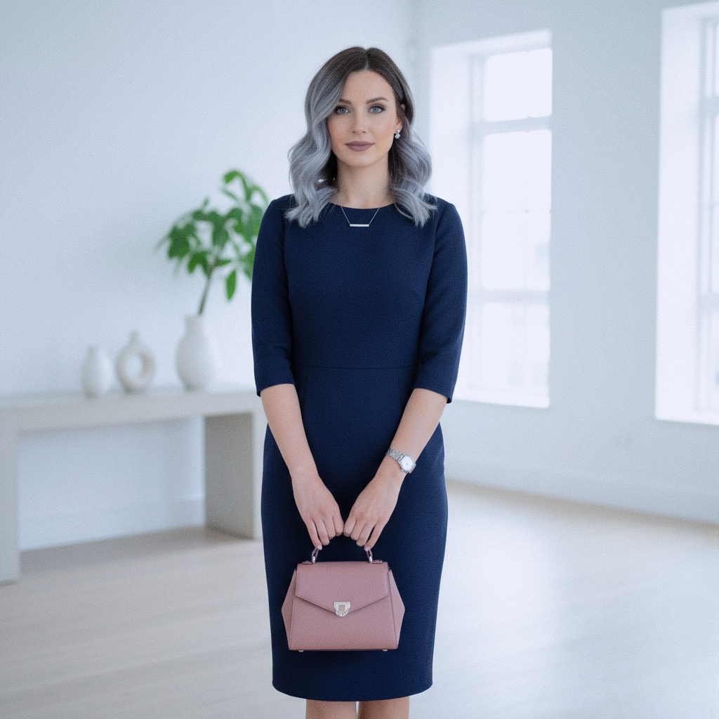 W środowisku zawodowym sprawdzą się navy blue garnitury lub sukienki typu sheath, które można urozmaicić bladoróżową bluzką lub akcesoriami w kolorze sea green. Kluczem jest dodanie jasnego lub pastelowego akcentu do neutralnej bazy, co nadaje profesjonalnemu lookowi świeżości i nowoczesności.